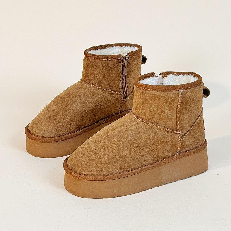 Snow boots new autumn and winter casual velvet solid color heightening warm mid-top cotton shoes