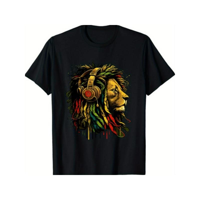 European sizes Jamaican Pride T-Shirt Featuring The Lion of Judah And Rasta Reggae Music Headphones