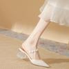 Summer transparent thick heel medium heel slippers year French bag head drag pointed sandals one word belt outside wear single shoes