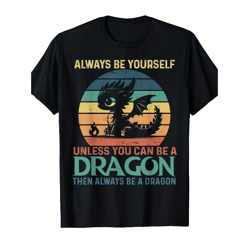European sizes Men's Vintage Dragon T-Shirt Funny Saying "Always Be Yourself Unless You Can Be A Dragon"