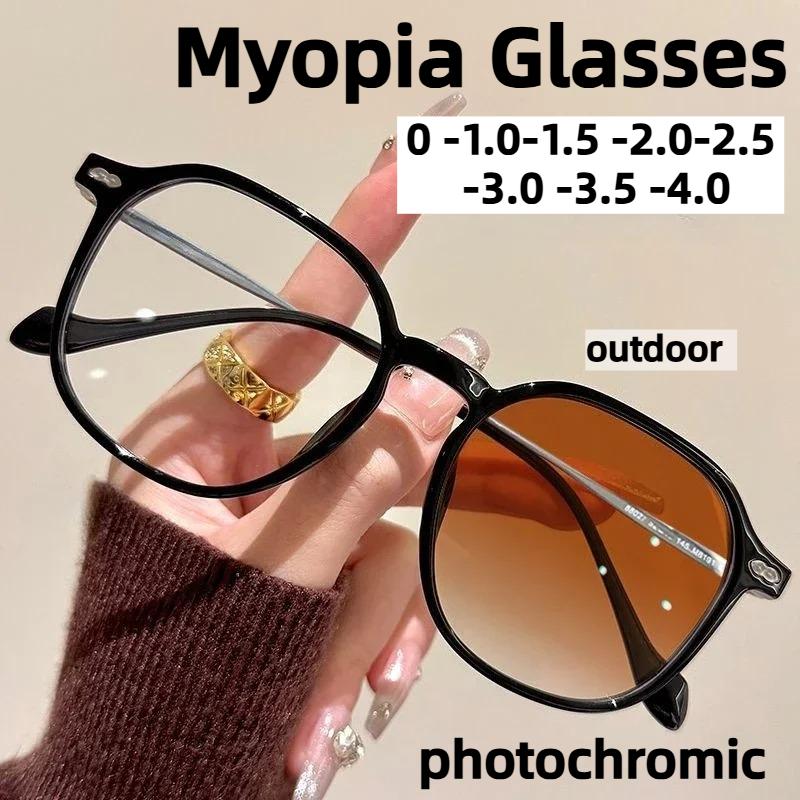 Neutral Fashion Photochromic Myopia Glasses Large Frame Color-changing Anti-blue Light for Women