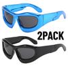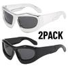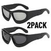 2PACK Trendy Men Cycling Climbing Glasses UV400 Protection High-end Silver Sunglasses Fashionable Square Frame