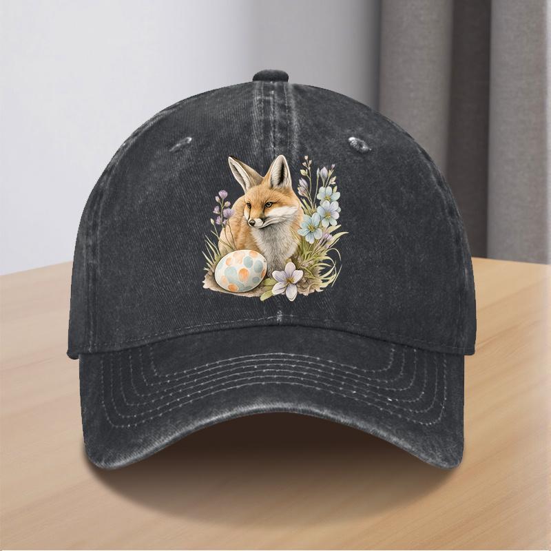 Easter Fox with Pastel Egg Baseball Cap Unisex Polyester Casual Adjustable Hat