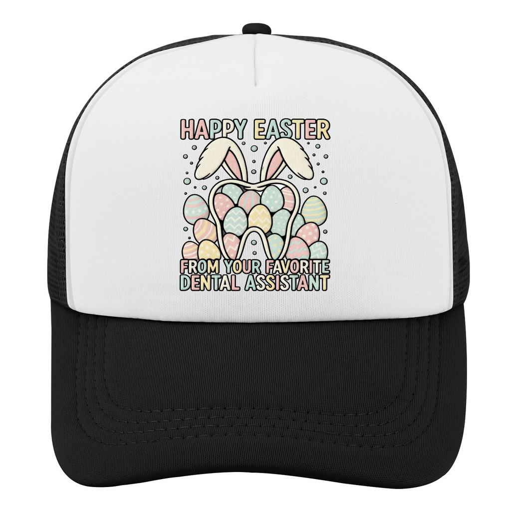 Happy Easter Dental Assistant Tooth Bunny Trucker Hat Polyester Casual Adjustable Baseball Cap