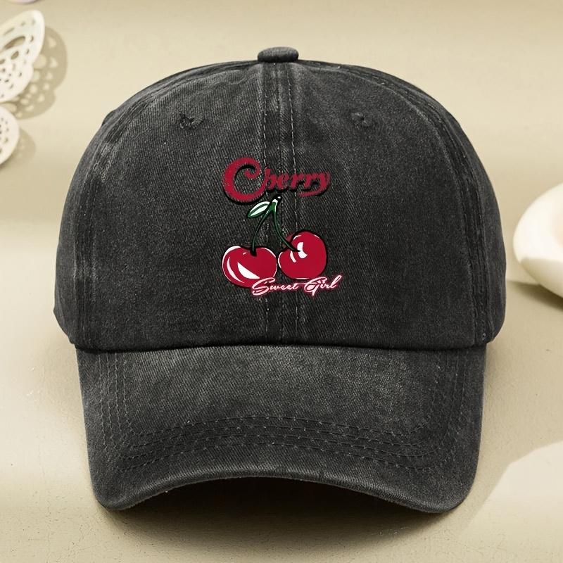 Cherry Sweet Girl Washed Baseball Cap Retro Distressed Print Adjustable Unisex Casual Sports Cap