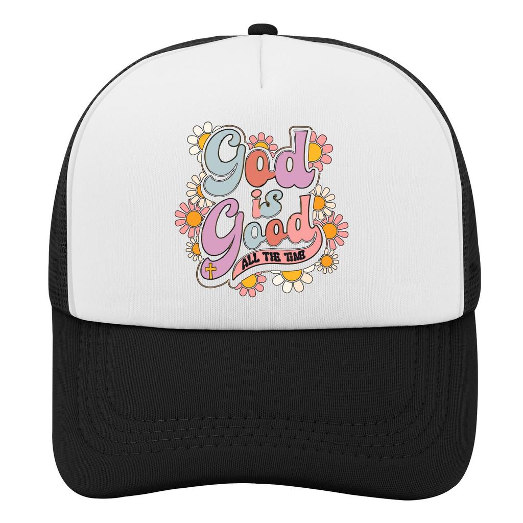 God Is Good All The Time Retro Flowers Trucker Hat Christian Faith Unisex Casual Baseball Cap