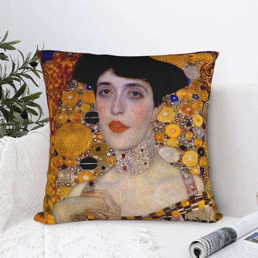 Gustav Klimt Square Pillow Covers Polyester Bed Car Elegant Lady Adele Bloch Bauer Cushion Cover Decorative Throw Pillow Case