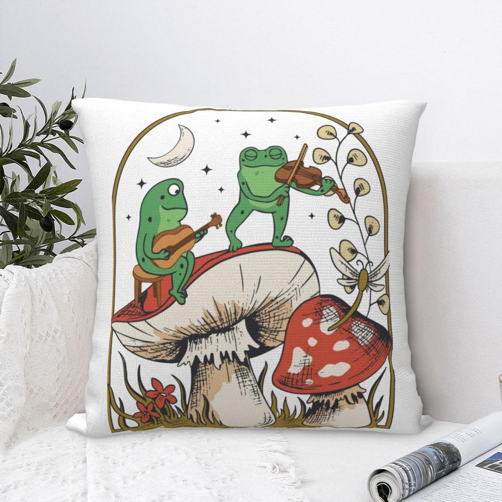 Cottagecore Aesthetic Frogs Guitar Violin Mushroom Art Square Pillowcases Sofa Cushion Case Creative Decor Pillow Cover