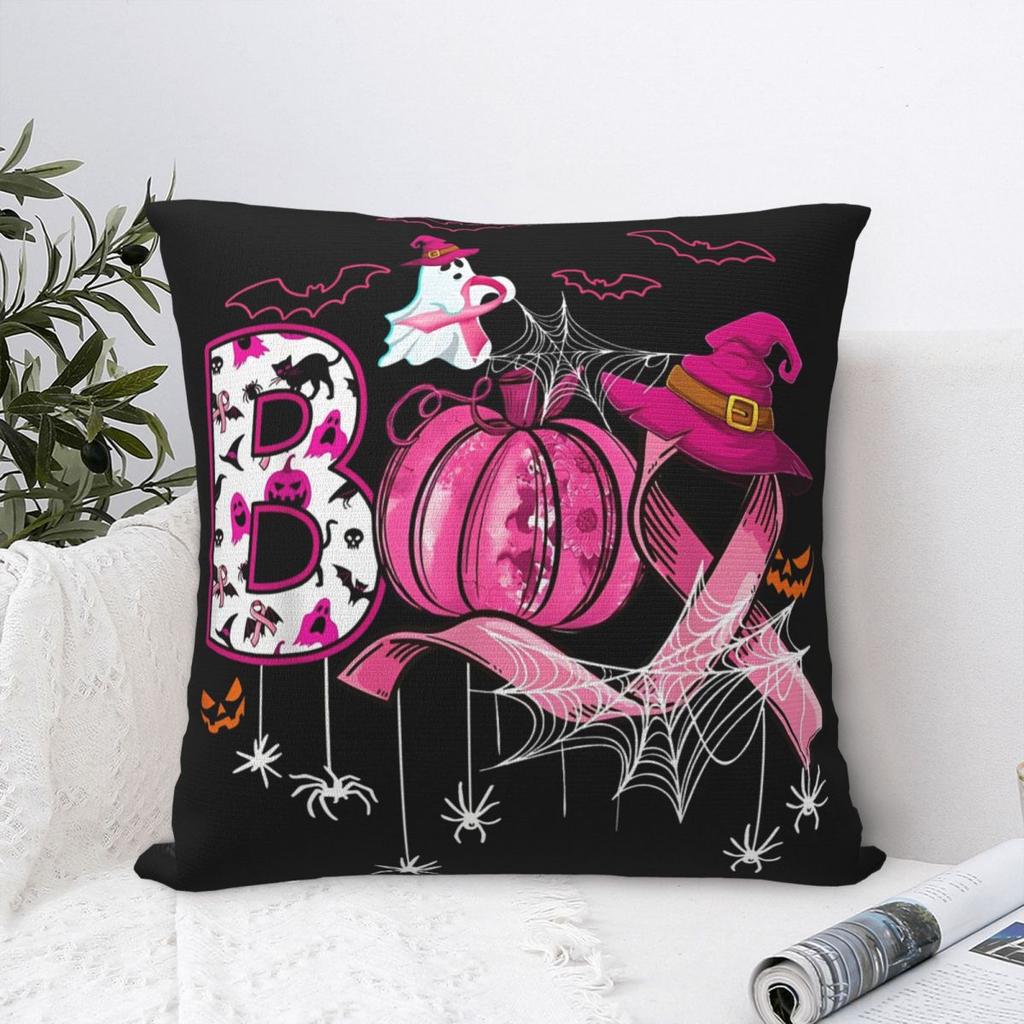 Boo Halloween Pumpkin Pink Ribbon Witch Breast Cancer Pillowcase Cushion Cover Decorations Throw Pillow Case Cover Sofa