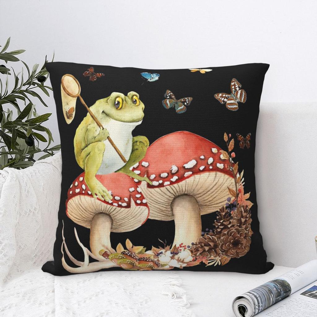 Cute Frog Mushroom Butterfly Cottagecore Aesthetic Pillowcase Polyester Cushion Cover Decorations Throw Pillow Case Cover Home