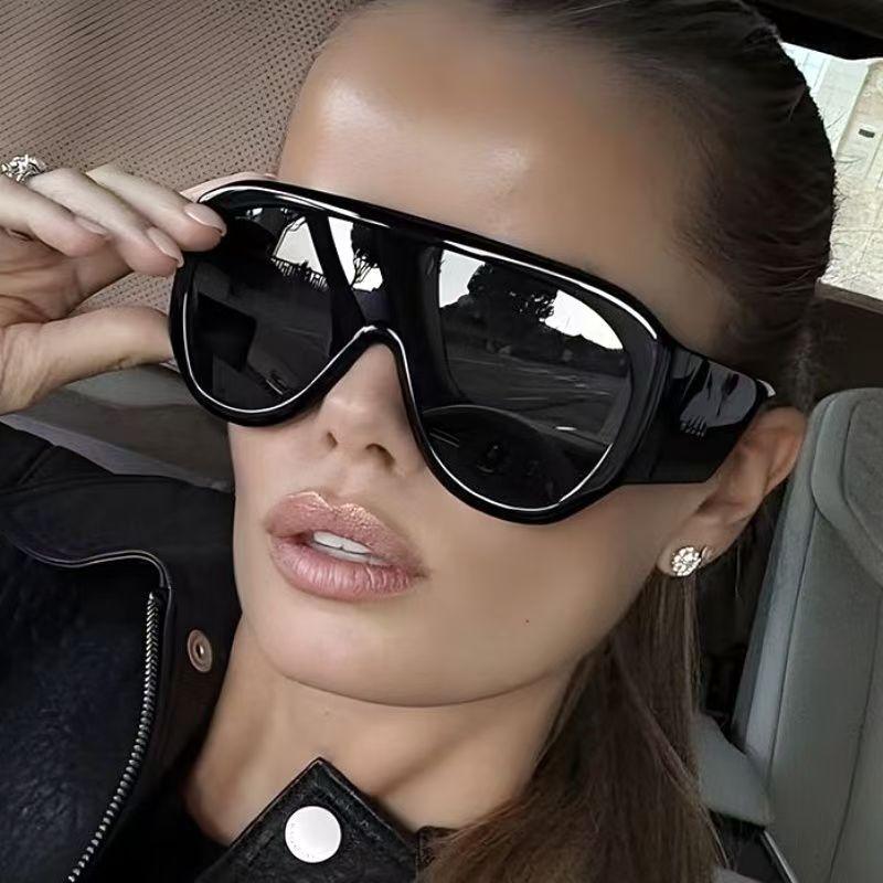 Luxury Brand Retro Big Frame Women Sunglasses Tea Color Square Pilot Shades UV400 Protection Stylish Sun Glasses
