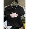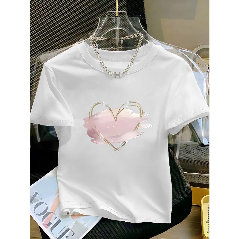 European Size Heart-Shaped Pattern Short-Sleeve Women'S Y2K Style, Cropped T-Shirt, Fashionable, Elegant, Made of Soft And Comfortable Fabric