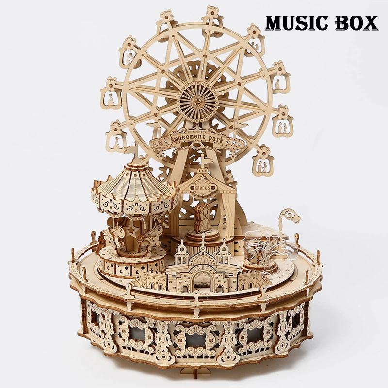 3D Wooden Puzzle Dream Amusement Park Led Rotatable Ferris Wheel Music Octave Box DIY Assembly Model Kit Toy Gift for Kids Adult