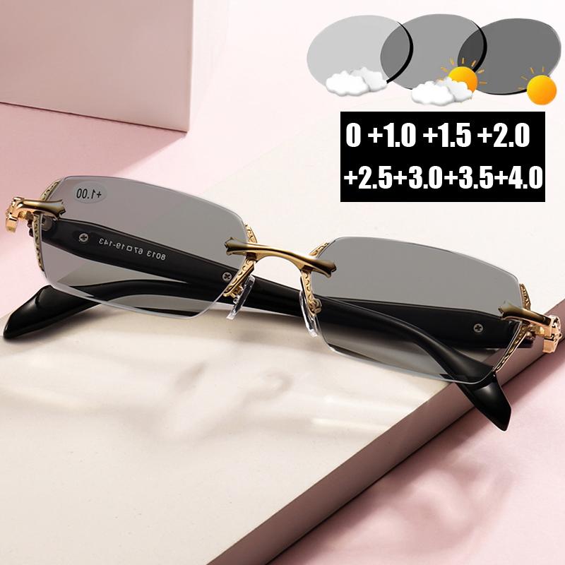 Smart Photochromic Sunglasses for Women Men Trendy Rimless Far Sight Glasses Blue Light Blocking Reading Eyeglasses