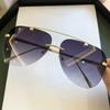 Vintage Rimless Alloy Aviation Pilot Sunglasses for Men Women Gradient Lens Metal Oval Shades Black Brown