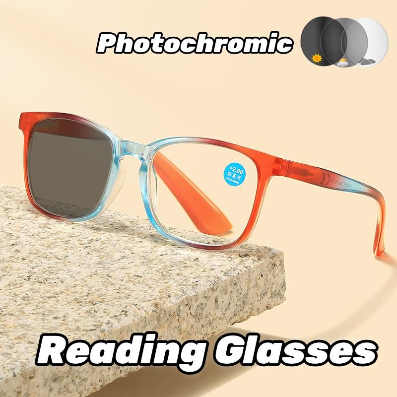 Fashionable Anti Blue Light Photochromic Reading Glasses HD Ultra Light Large Frame Color Changing for Men Women