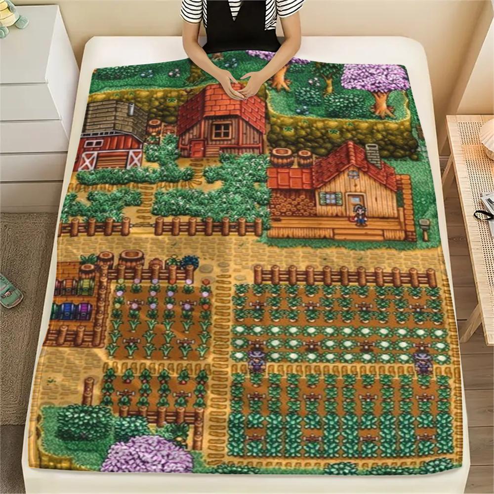 1PC Stardew Valley Print Flannel Blanket, High quality Comfortable for All Seasons, Home Decor, Warmth and Comfort, Perfect for Christmas Gifts179