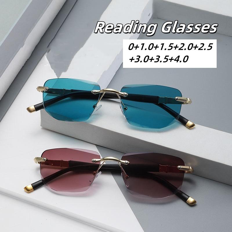 Unisex Rimless Reading Sunglasses Fashion Gradient Sun Glasses Retro Luxury Designer Eyewear for Travel