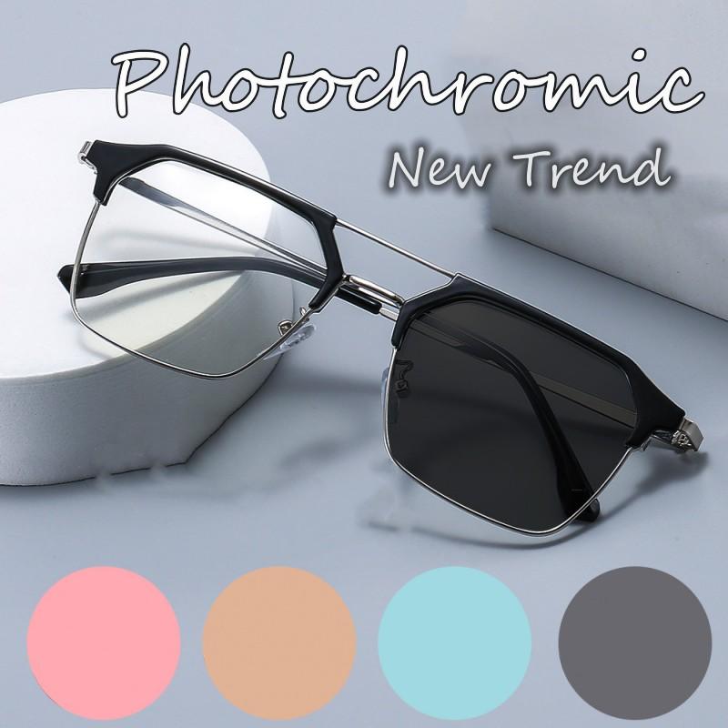 New Luxury Photochromic Glasses Double Deam Color Changing Myopia Eyewear Men Women Minus Diopter 0 To -6.0
