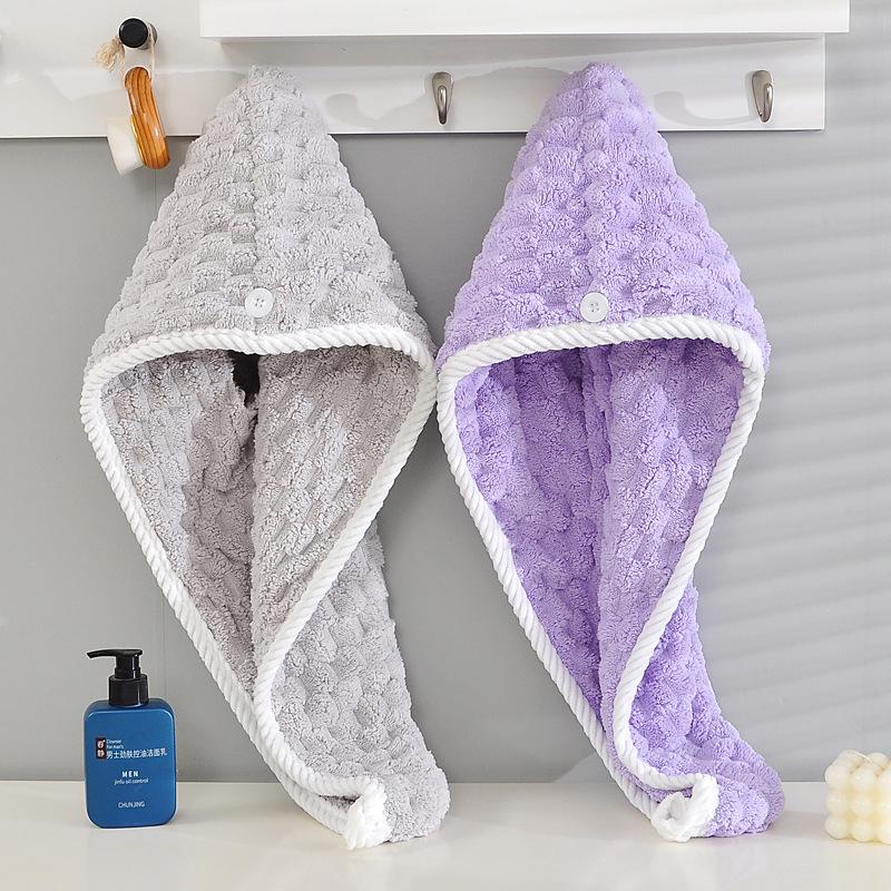 New polyester brocade coral fleece cloud grid shower cap shampoo dry hair towel, household absorbent dry hair cap bag head towel