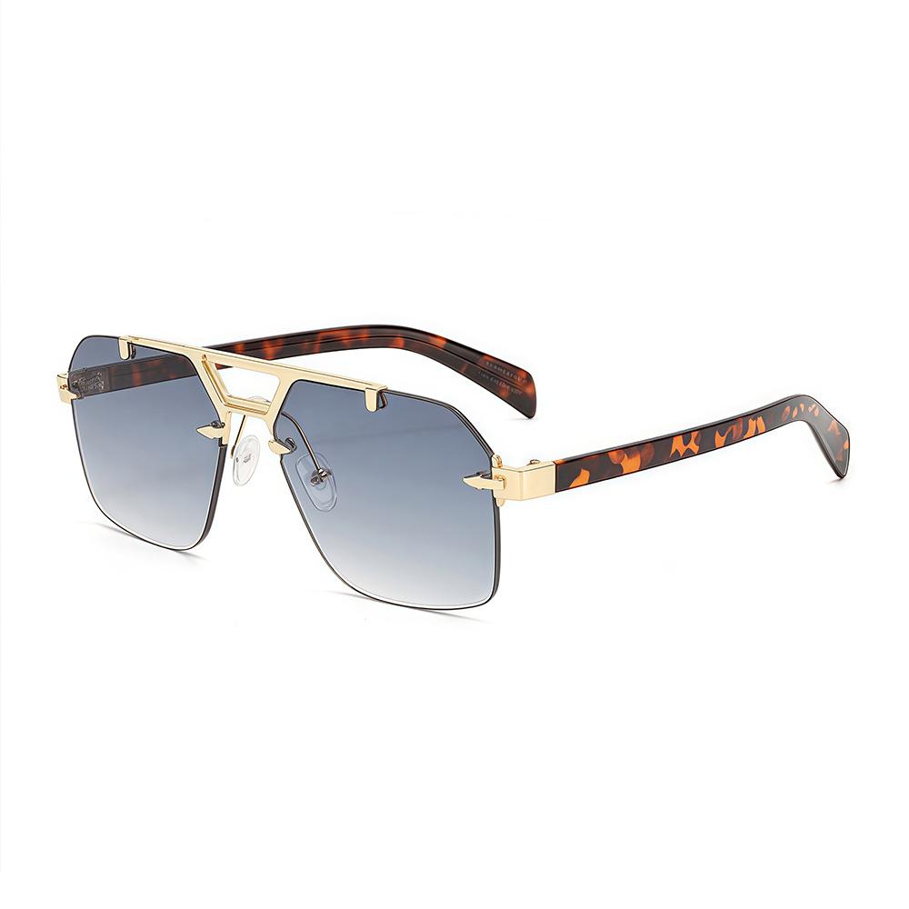 Luxury Retro Leopard Print Gradient Double Bridge Rectangular Sunglasses UV400 Frameless Design for Women and Men