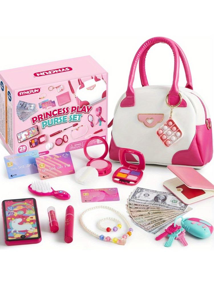 JOYFY Play Purse Set for Little Girls 27 PCS Princess Toy Set with Handbags Makeup Phone Wallet Jewelry Lipstick & Keys Gift