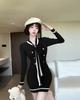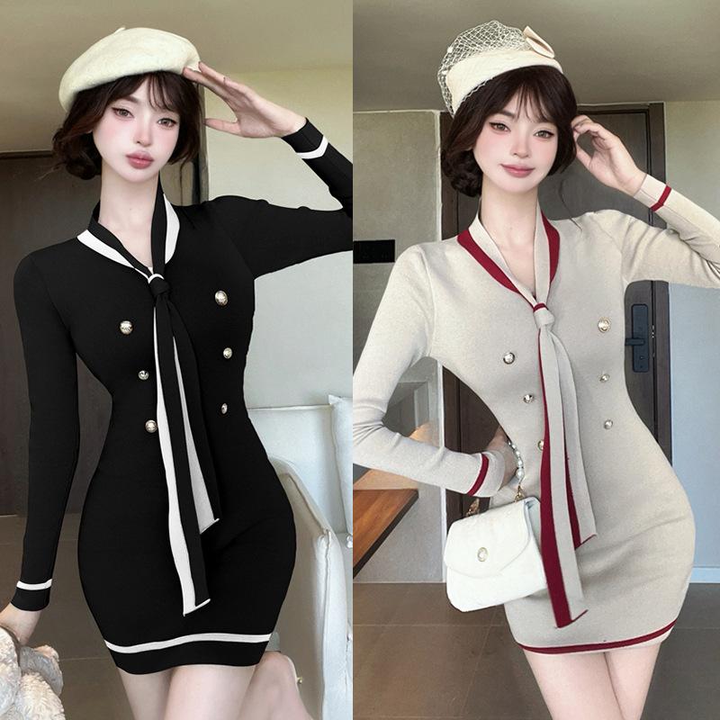 Autumn new temperament socialite Xiaoxiangfeng long-sleeved dress for women, waist and thin knitted hip-wrapped short skirt for women