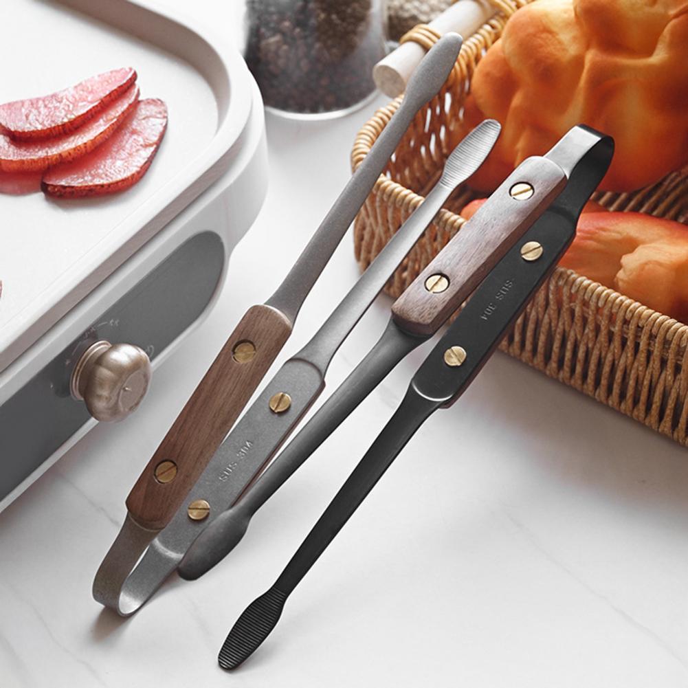 Stainless Steel Kitchen Tongs Rust Resistant Cooking Clamp Stainless Steel Cooking Tongs with Walnut Handle Heat for Grilling