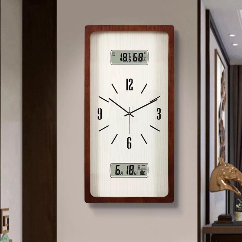 Wall Clock New Chinese Solid Wood Living Room Rectangular Home Bedroom Simple Atmosphere Silent Wall Clock Home Decor