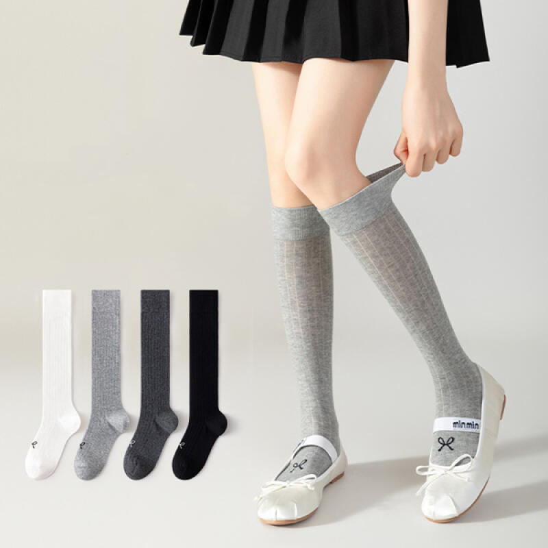 Palmhami Casual Ribbon Embroidery Loose Long Socks
