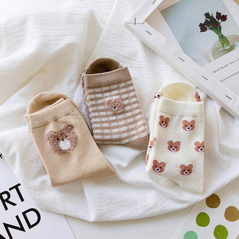 Cute Teddy Bear Character Student Socks Set (3 Pairs)