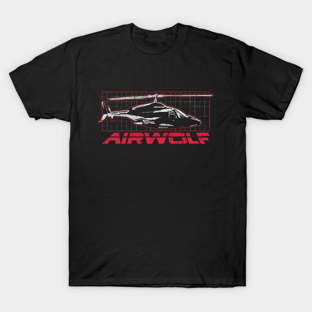 Men Black Print T-shirt Helicopter Airwolf No-Cut Transfer Paper Print Cotton Tshirt