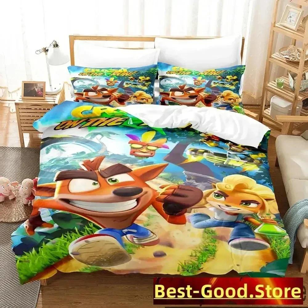 3D Print Crash Bandicoot Game Bedding Set Duvet Cover Sheet Printed Bed Set Pillowcase Full Queen King Size Comforter Bedroom