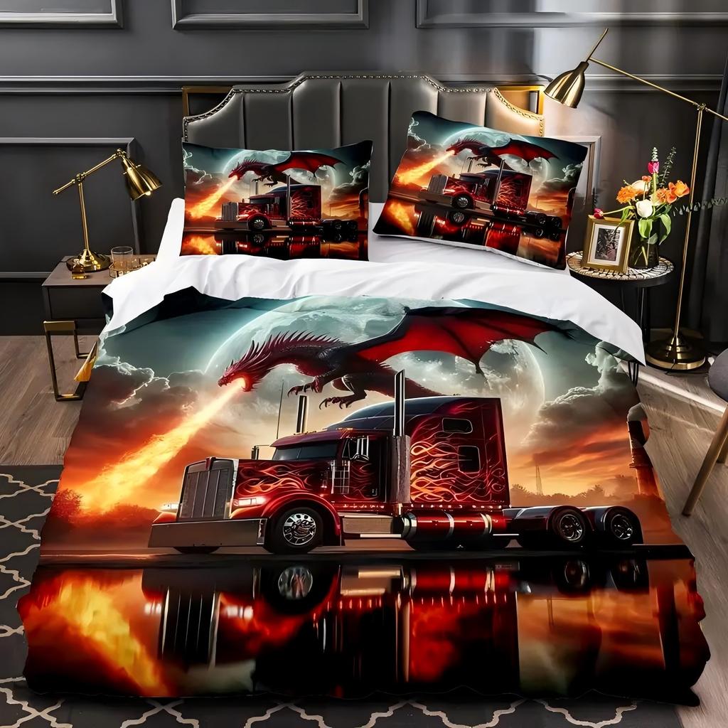 Cool Dragon Fireworks Truck Pattern 3D Print Duvet Cover Soft Comfortable Bedding Set Wildlife Theme Quilt Cover Set Pillowcases