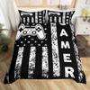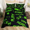 Gamepad Duvet Cover Set Queen Video Game Twin Bedding Set Microfiber Green Cartoon Gamer Pattern Electronic Theme Quilt Cover