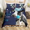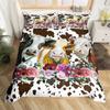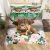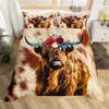 Highland Cow Duvet Cover King Microfiber Western Farmhouse Animal Bedding Set Leopard Cow Skin Fur Floral Print Comforter Cover