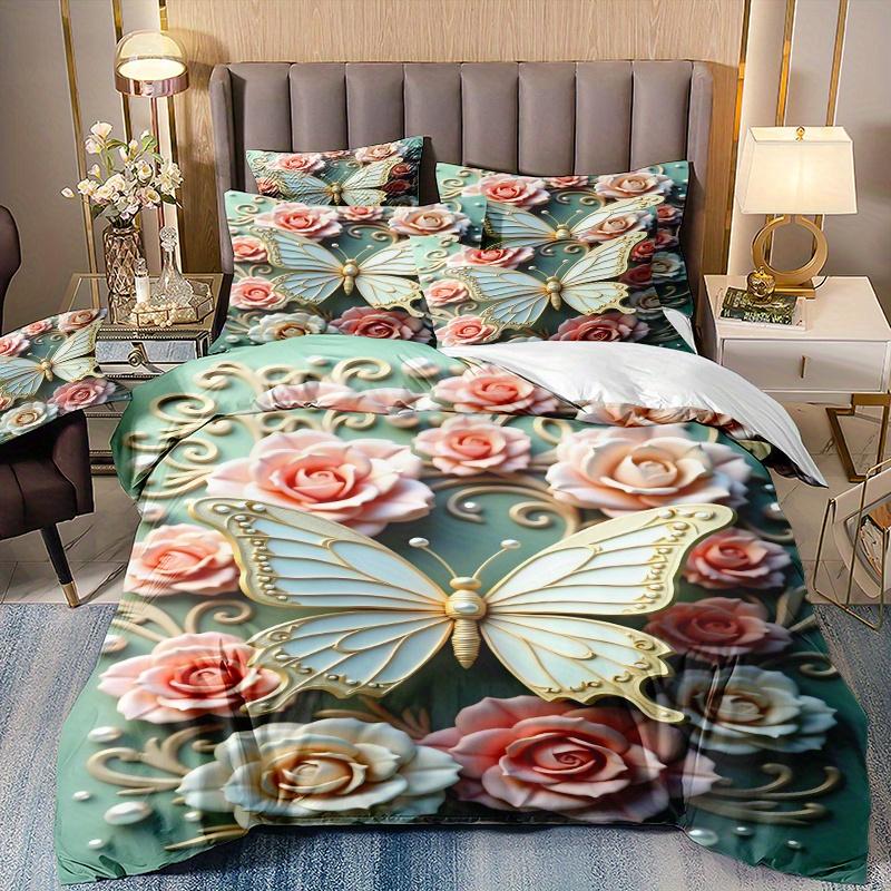 3pcs 3D Butterfly Flower Duvet Cover Set, 1 * Duvet Cover + 2 * Pillowcases, No Insert, Ultra-Soft Comfortable Butterfly Pattern