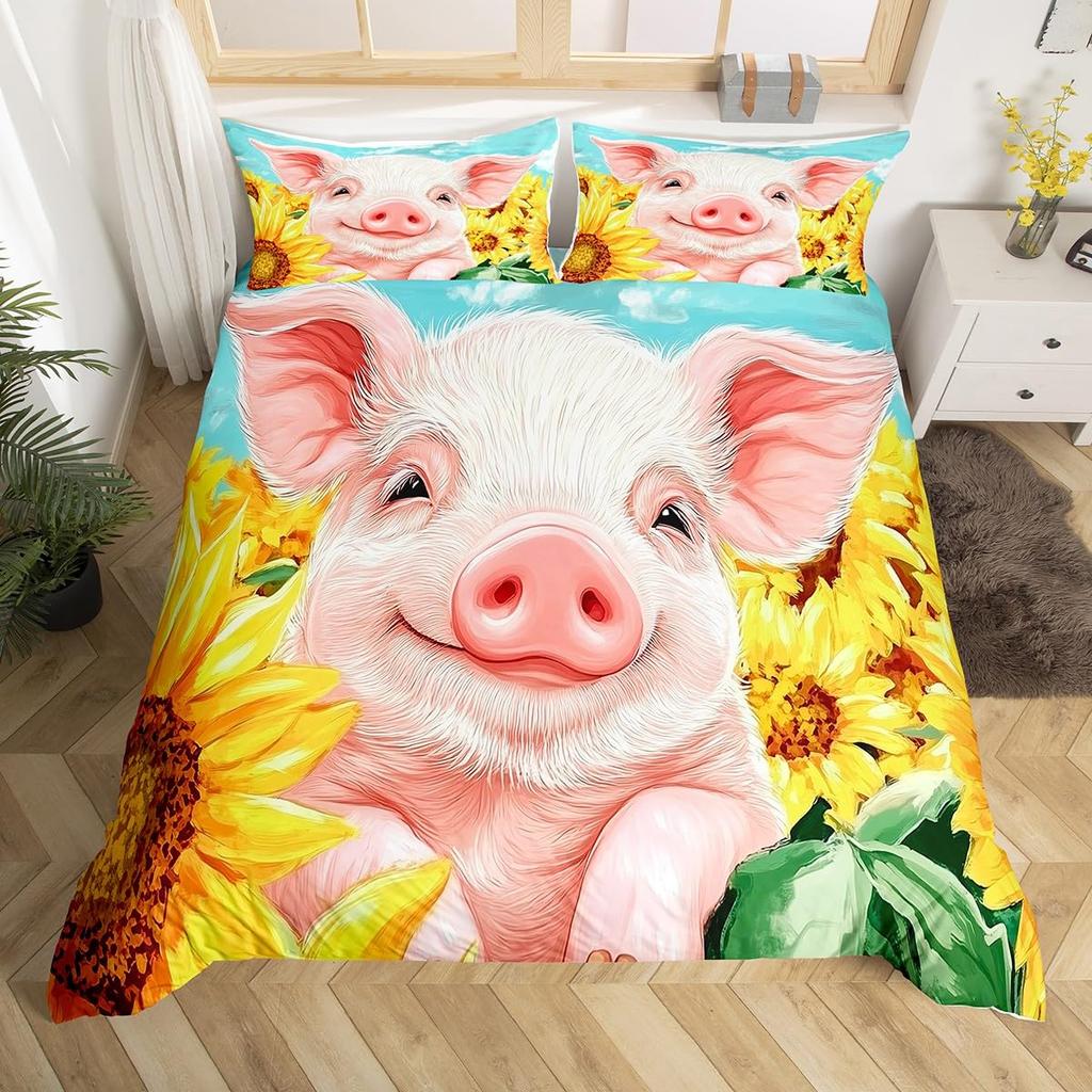 Pigs Duvet Cover Set for Kids Boys Girls Quilt Covers Lightweight Down Room Decor Queen Size 2 Pillowcase 1 Duvet Cover No Quilt