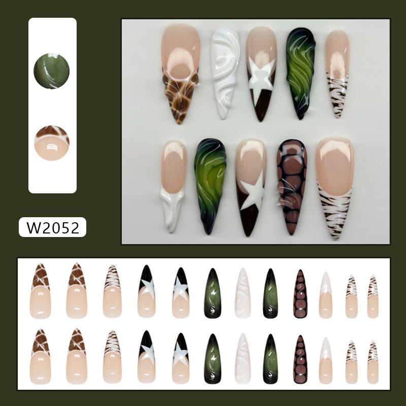 Three-dimensional hazelnut French sweet and cool zebra pattern European and American style removable manicure 24 pieces press on nails