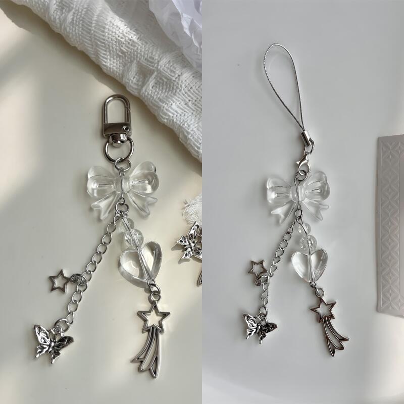 2-type clear ribbon heart bag holder ring keyring