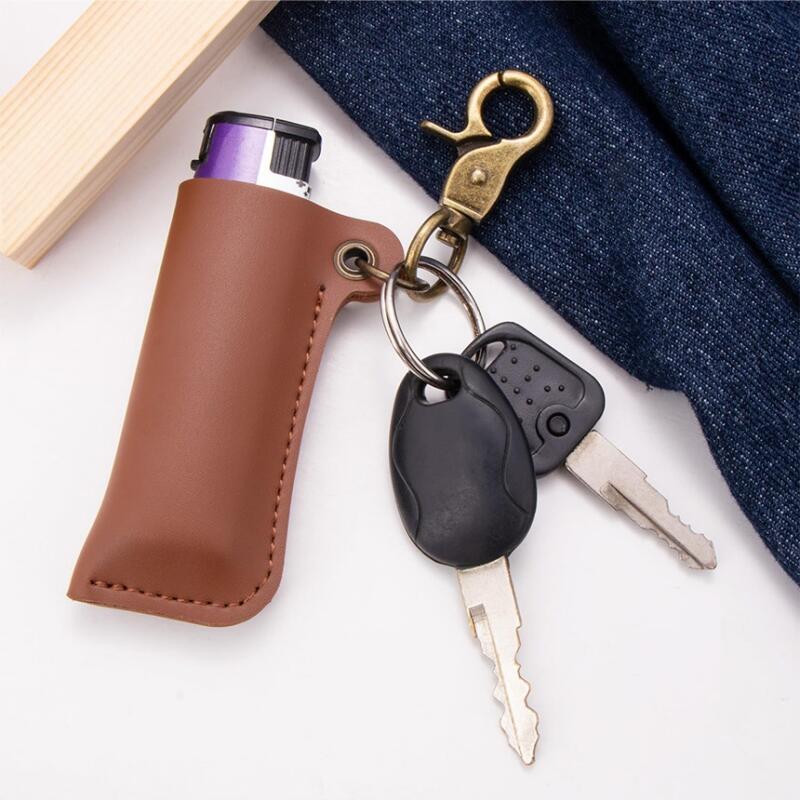 Leather lighter case key ring keychain template 2-piece storage box