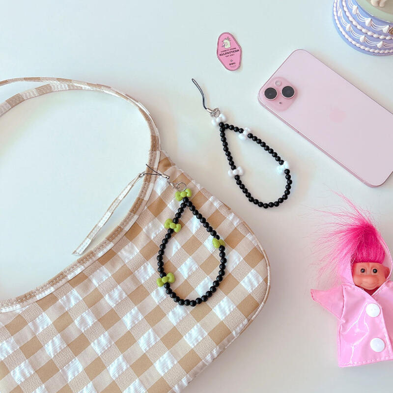 Black beaded ribbon phone strap