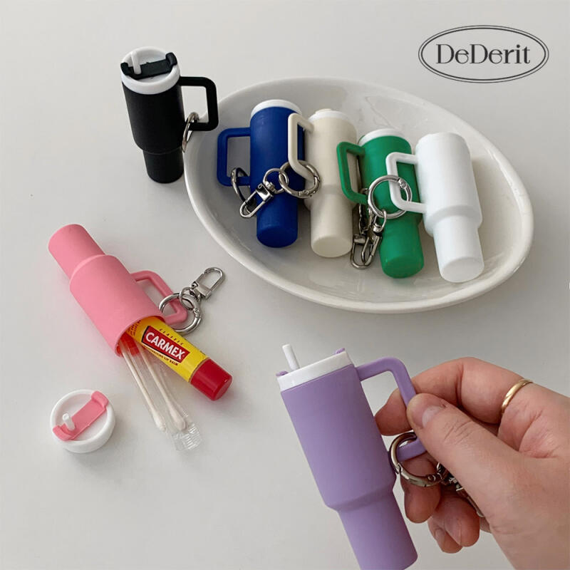 Mini Tumbler Keychain Lipstick Lip Balm Case Storage Keyring