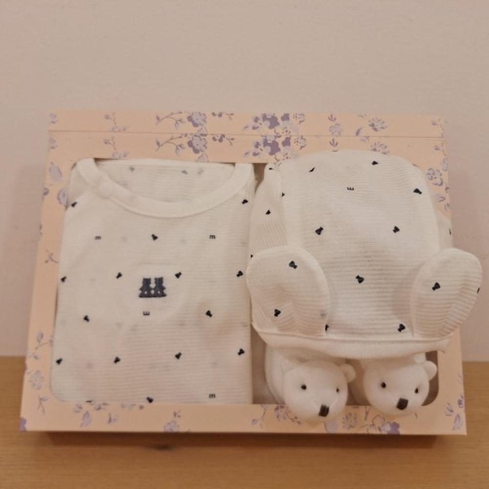 The WH Mink Bodysuit & Doll Sock Set is designed for the 26-year SS season as a gifting item for newborns, combining a dot berry patterned 7-part bodysuit and cute doll socks in a cozy indoor set. The soft material is gentle on the skin, breathable, and provides comfort for activities.