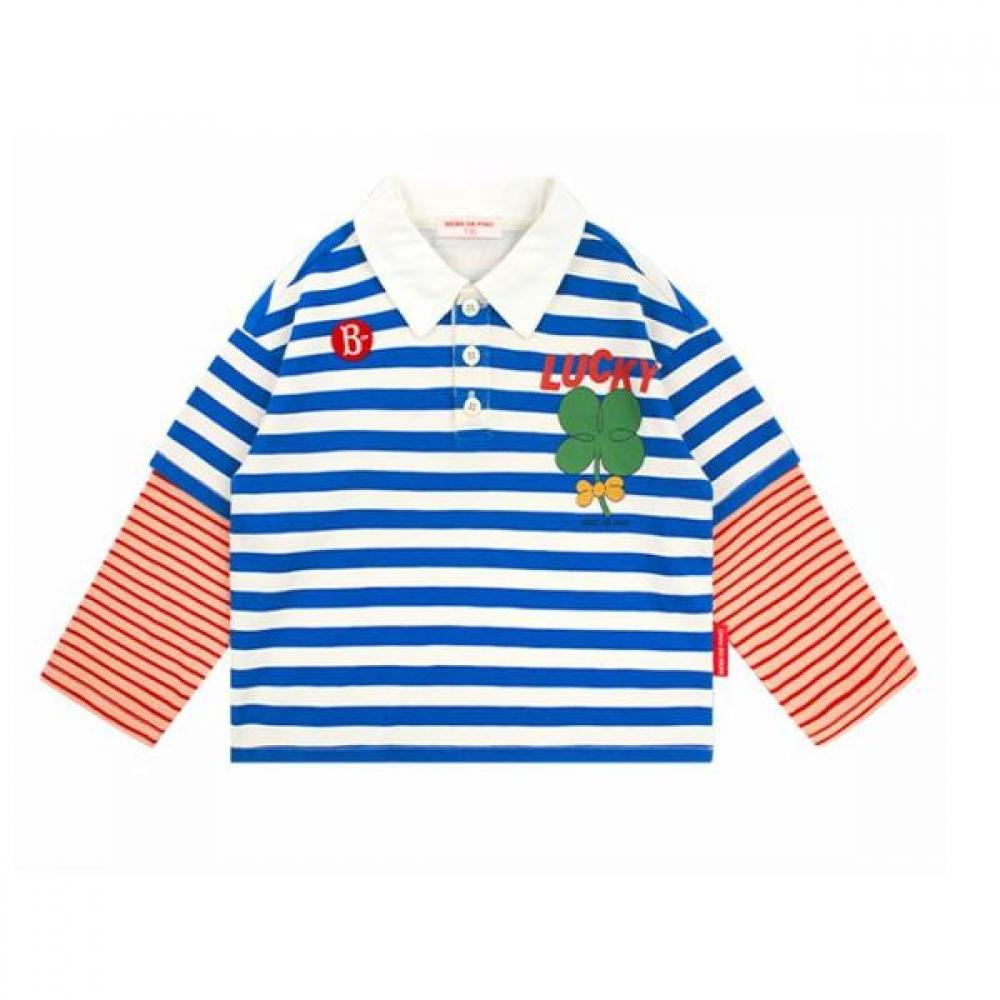 şanslı yonca çizgili katmanlı uzun kollu tişört