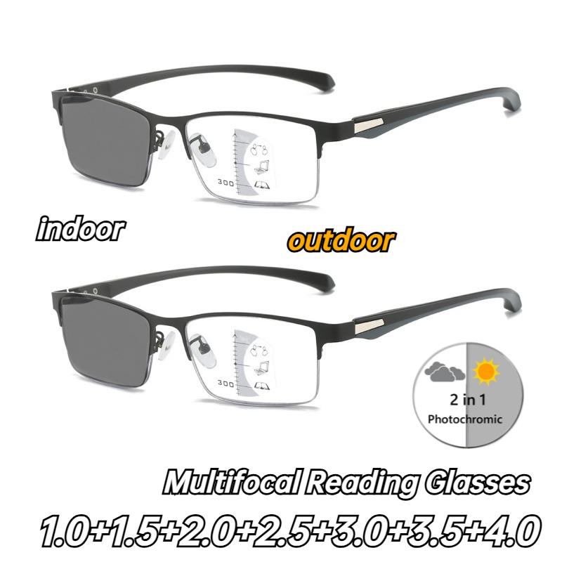 Mens Photochromic Presbyopia Glasses Half Frame Multifocal Reading Anti Blue Light HD Clear Vision