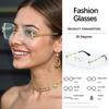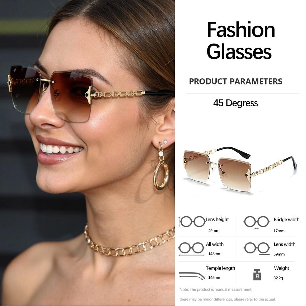 Frameless Chain Decor Square Sunglasses Women Light Transparent Design Daily Commuting Fashion Accessories