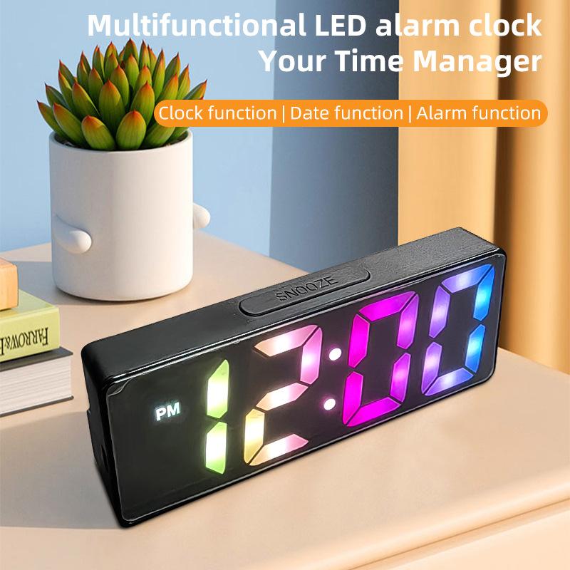 Multi-Functional Color Screen LED Alarm Clock - Plug-in Dual-purpose Digital Electronic Clock - Voice-controlled Temperature & Display Digital Digi...