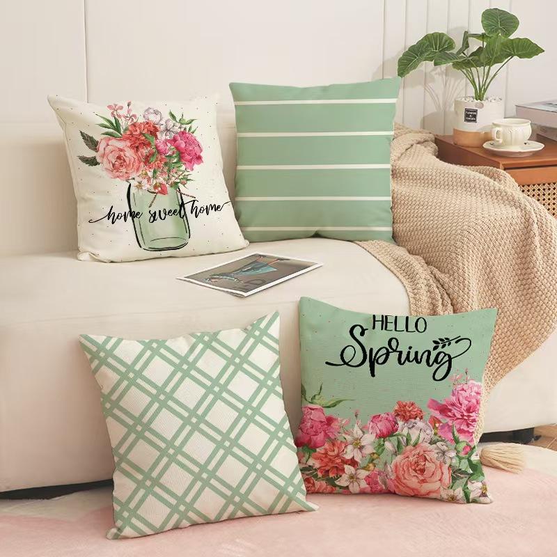 New Spring Geometric Print Pillow Cover Linen Green Set Combination Bedside Cushion Living Room Sofa Cushion Cover