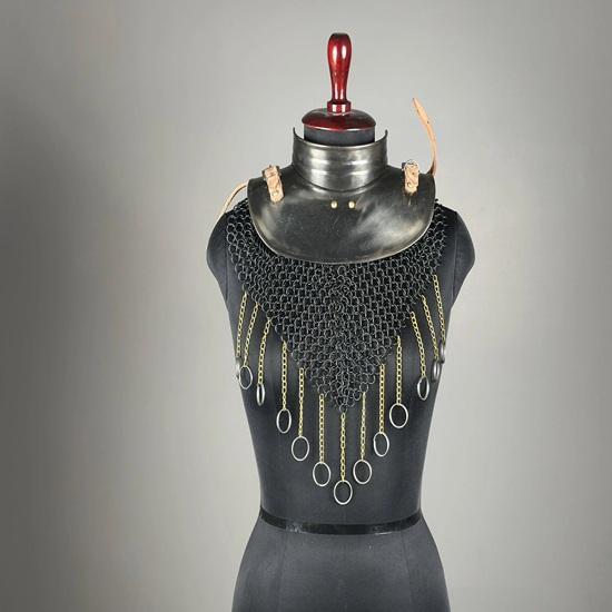 Otantik şövalye zırhı ve zarif kadın tasarımının çarpıcı bir birleşimi olan Cesur Hanım Zırh Yaka ile korkusuz bir orta çağ savaşçısının yerine geçin.. Güç ve stil için üretilmiş bu boyun zırhı (boyun zırhı) Gösterişli bir çelik göğüs zırhını karmaşık zincir zırhla eşleştirerek, kostümler, koleksiyon eşyaları veya güçlendirici hediyeler için mükemmel, göz kamaştırıcı bir parça oluşturur.. İster bir Rönesans fuarını yönetiyor, ister bir cosplay yarışmasına damgasını vuruyor, ister cesaretin bir sembolünü saklıyor olsun, bu zırh onun en üst düzey aksesuarıdır.